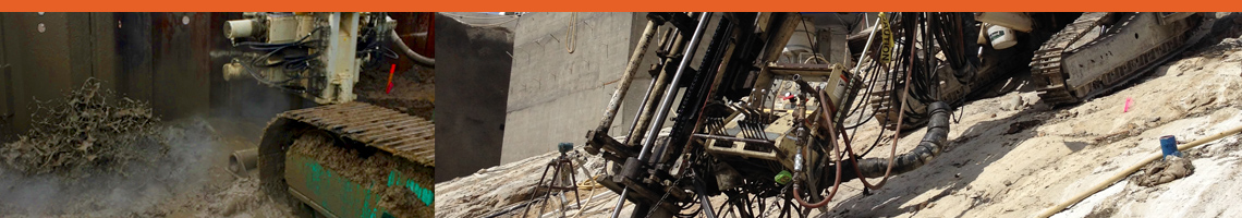 Jet grouting involves the use of high energy horizontal fluid jets to hydraulically erode and mix the native soils to create a specific geometry (typically columns) of soil-cement elements. Portland cement is the most common base component of the grout mix, however other binders or reagents can be used in lieu of cement depending on the goals of the treatment. Jet grouting can be used in essentially any soil type; common uses include shoring/underpinning, excavation bottom seals, water control for excavations and pre-treatment for tunneling in unstable conditions.